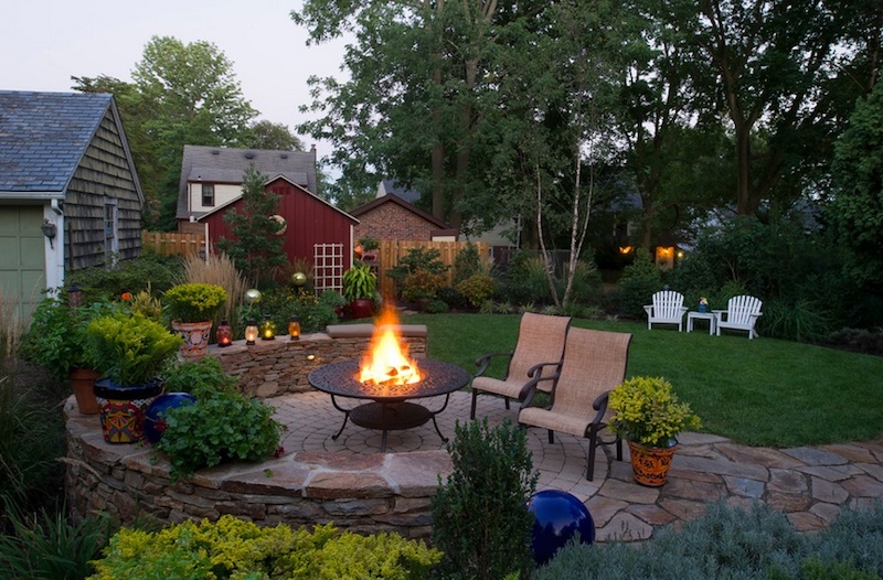 Также вы можете сочетать скамью и ящик для хранения дров. Достаточно внутри деревянной скамьи определить ниши для поленьев. Другой вариант - создание в отдельной дровнице полочек для разных предметов, например, тех, которые понадобятся вам при разведении костра и пр. Чаша для костра из металла сама по себе является самодостаточным финальным штрихом в вашем саду. А усилить эффект, можно за счет определенного оформления площадки, которое будет идеально сочетаться с уличным камином. Гостевую зону нередко оформляют с помощью вазонов, садовых скульптур. Используйте свое воображение и воплощайте идеи, чтобы обустроить уголок на вашем участке. Главное знать меру, чтобы не перегружать обстановку.