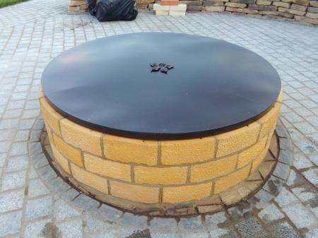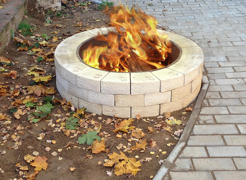 Диаметр кострища равняется 85 см без камней и 125 с камнями. В комплекте чаши – декоративные камни желтого цвета в необходимом количестве, а также металлическая обечайка.